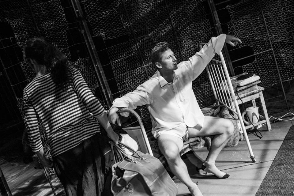 Pomysł z klatką, która za sprawą scenografa Piotra Tetlaka, wyrosła na scenie Lubuskiego Teatru, jest genialny. Raz — miejsce uwięzienia Jaśka (Ernest Nita w pełni aktorskiej formy), który został przy umierającym teraz ojcu. Na skarb gdzieś zakopany liczy. Podobnie jak na miłość… Dwa — wyłożony garnkami, rondlami i patelniami sufit klatki ogranicza, grozi i przytłacza. Ciężarem żelaza czy aluminium. Ale też grzechem i winą rodzinną, która ciągnie się za Jaśkiem jak jakieś genetycznie wdrukowane fatum. Trzy — metalowa klatka to gotowe instrumentarium. Wystarczy, że Jasiek na dach wyjdzie, wstrząśnie żelastwem — hałas potworny. A jak jeszcze wiejska chuliganerio młotkami pomoże — mamy porażającą suitę. To ten rodzaj „zabawy” z dźwiękiem i rytmem, za którą mogliśmy autorsko-reżyserski duet autorów Paweł Wolak — Katarzyna Dworak pokochać już przy ubiegłorocznej zielonogórskiej realizacji — „Gdy przyjdzie sen — tragedia miłosna”. Najnowszym spektaklem Paweł Wolak i Katarzyna Dworak zamykają trylogię „opowieści wiejskich”, które „sielskiej krainie” się wymykają. Jest tu przywołana historia (hitlerowska okupacja, rzeź wołyńska), ale nad motywem dziedziczenia ciężaru krwawej traumy górę bierze kwestia wiary. Oczywiście w Boga, ale też w mit rodzinny, którego Jasiek staje się wyznawcą i ofiarą. To spektakl Ernesta Nity, który nie schodzi ze sceny. Wraz ze swym bohaterem ewoluuje. Z hałasującego na dachu swego domu strażnika mitu staje się człowiekiem, który uświadamia sobie bezsens samoograniczenia. Autorzy kolejny raz pokazują, jak zręcznie potrafią wpleść w tragedię humor i wciągnąć widza do teatralnej klatki.