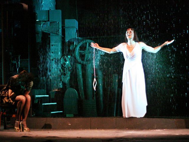 Realne są złe duchy i duch-szatan (świetna w tej roli Marzena Wieczorek). Są tak rzeczywiste, jak walka, którą toczą o Konrada i która toczy Konrad sam ze sobą i z Bogiem. A Gustaw-Konrad w przedstawieniu Rafała Matusza to człowiek współczesny, okaleczony, rozpaczliwie wołający do Boga. Improwizacja to nie wygłaszany w bezruchu monolog, ale opowieść o wywyższeniu i upadku. Konrad rozmawia z Bogiem, wchodząc na drabinę, niczym na drabinę Jakubową, symbolizującą łączność stwórcy z ludźmi. Mimo swej pychy, mimo poczucia wyższości wydaje się, by tu jednym z nas, ludzi poszukujących relacji z Bogiem i ludźmi.