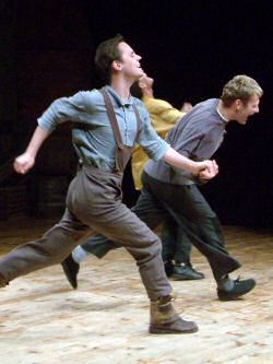 Siergiej Korniuszczenko, reżyser z Kaliningradu, zbudował przejrzysty spektakl - przekład powieści Huellego na scenę, utkany nie tylko ze słów, lecz z obrazów, gestów, dźwięków, strzępów piosenek, symboli, nastrojów, a często po prostu z milczenia. Oglądamy ciąg wielu krótkich, następujących po sobie scenek-obrazów, czasem pełnych dynamiki, czasem statycznych, bez słów. Przebiegiem wypadków rządzi poetyka wspomnień, marzeń i snów tego miejsca - czyli Gdańska czasów wojny i lat 50., kiedy to mali bohaterowie opowieści bawili się w lesie materiałami wybuchowymi i bronią, znalezionymi w poniemieckich bunkrach.