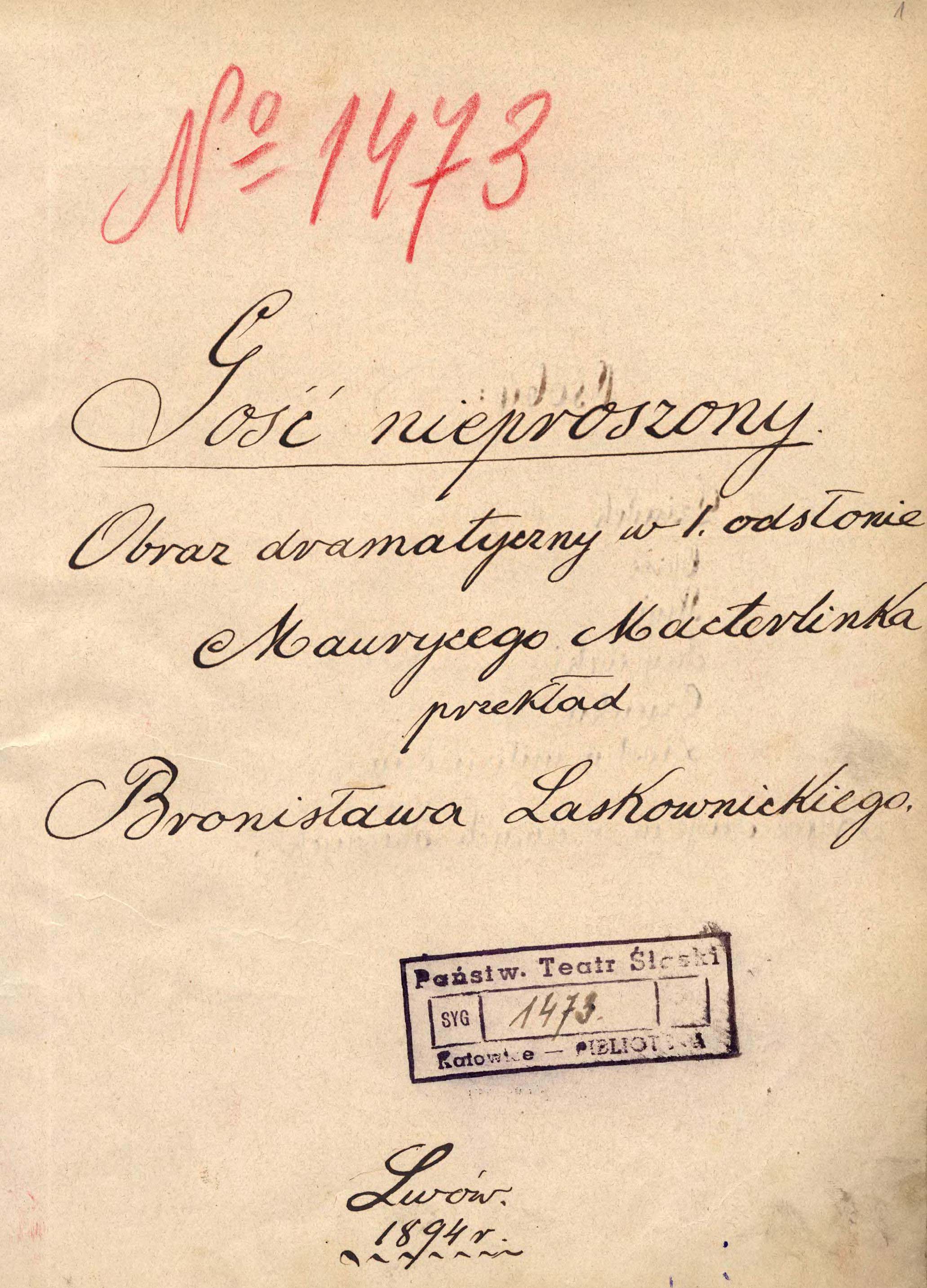 Lwów: polska prapremiera Intruza Maurice’a Maeterlincka (sztukę zagrano pod tytułem Gość nieproszony) w przekładzie Bronisława Laskownickiego. Pierwsze wystawienie dramatu Maeterlincka na ziemiach polskich. Egzemplarz z tego przedstawienia zachował się w zbiorze lwowskich egzemplarzy teatralnych przechowywanym w Bibliotece Śląskiej [wersja cyfrowa].